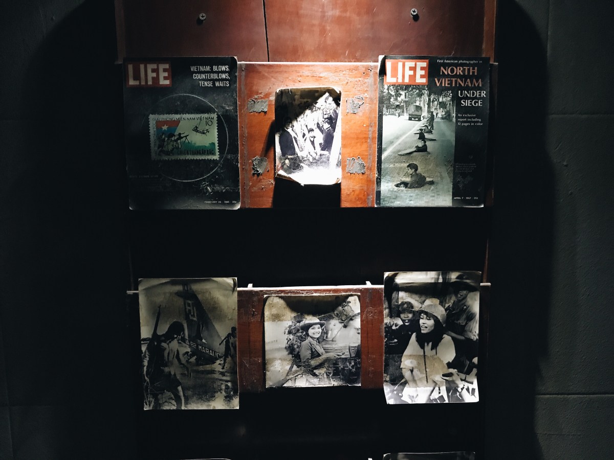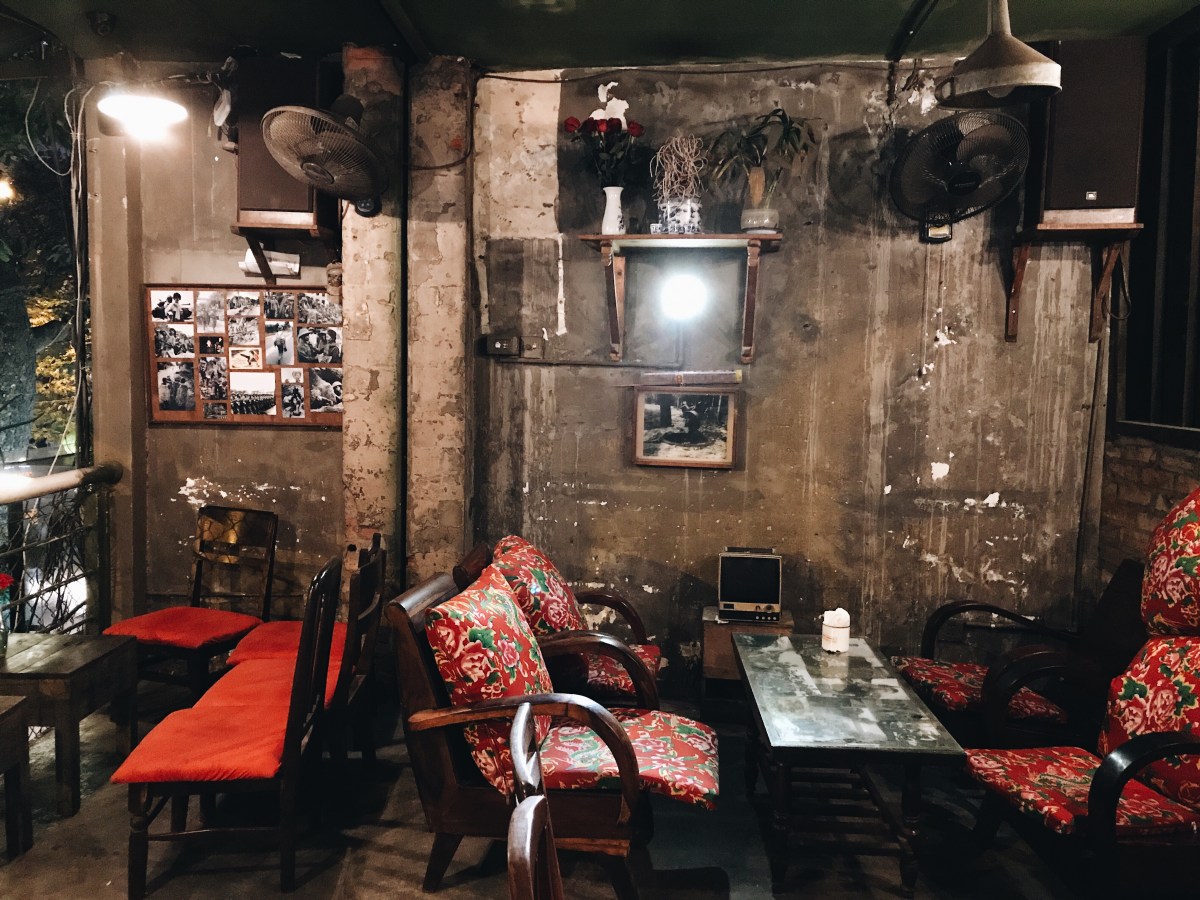 Cong Caphe holds a special place in our hearts too. Cong has several locations among the city, and we went to two of them. This cafe, unlike Hanoi Social Club, is right in the thick of the Old Quarter (both that we visited), situated on a ridiculously busy street corner. We could sit on the third floor balcony overlooking the intersection watching the motorbikes and cars, with absolutely zero stop signs or rules of the road, no traffic signals either to indicate who should go when, attempt their way across, with seemingly no hesitation or fear of an accident. It was fascinating and could keep our attention for the whole hour of rush hour. Motorcycles, scooters, cars, bicycles– everyone crossing whenever they wanted, usually a hoard of seven bikes and a couple cars going at once but that same number of vehicles coming at each other from all directions. What makes Cong unique is it’s supposed to be some coffeeshop that’s associated with the Viet Cong, the South Vietnam communist political organization from the days of the war. It’s decked out in army-green paint on the walls, buzzing old metal fans hanging rickety on the walls blowing warm outside air around the room, authentic black and white Time Magazine covers of the war plastered crooked on the walls, along with other photos of Viet Cong soldiers in the war, and to top it all off, old rusted light fixtures with flickering lights, as if the electricity were unreliable. This shop was badass and I’m sure it would give my parents or anyone from their generation the heeby-jeeby’s. I am utterly fascinated that visiting Vietnam “for fun” is close to the equivalent of my own children one day visiting Afghanistan “for fun”. This fact alone makes me love it all the more. I feel rebellious being an American in this shop. But I should be clear, we felt very loved by the Vietnamese. This was a hip underground coffee shop more than anything actually sketchy.