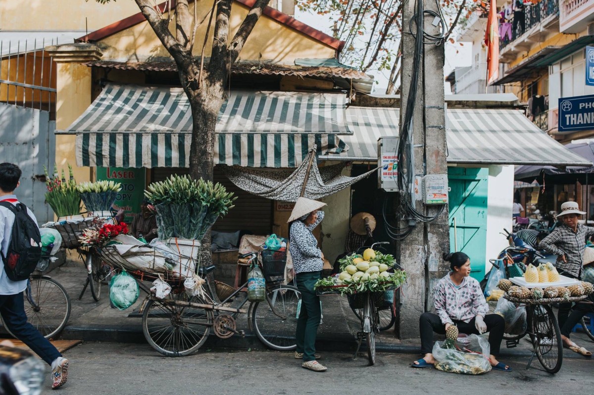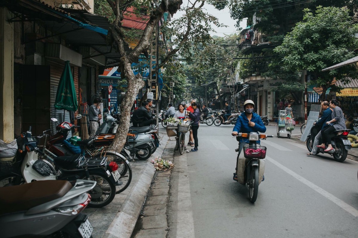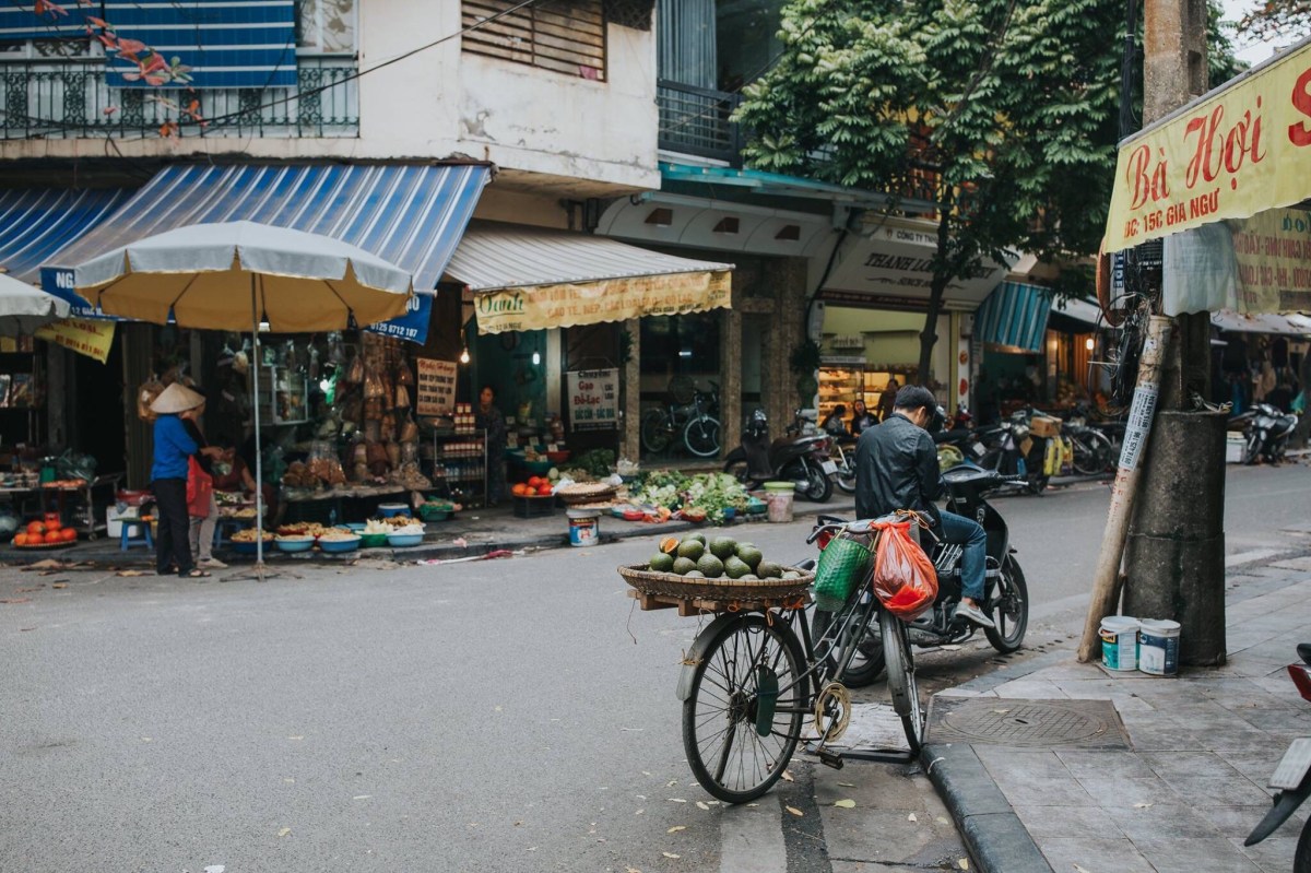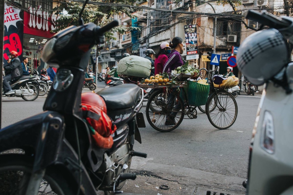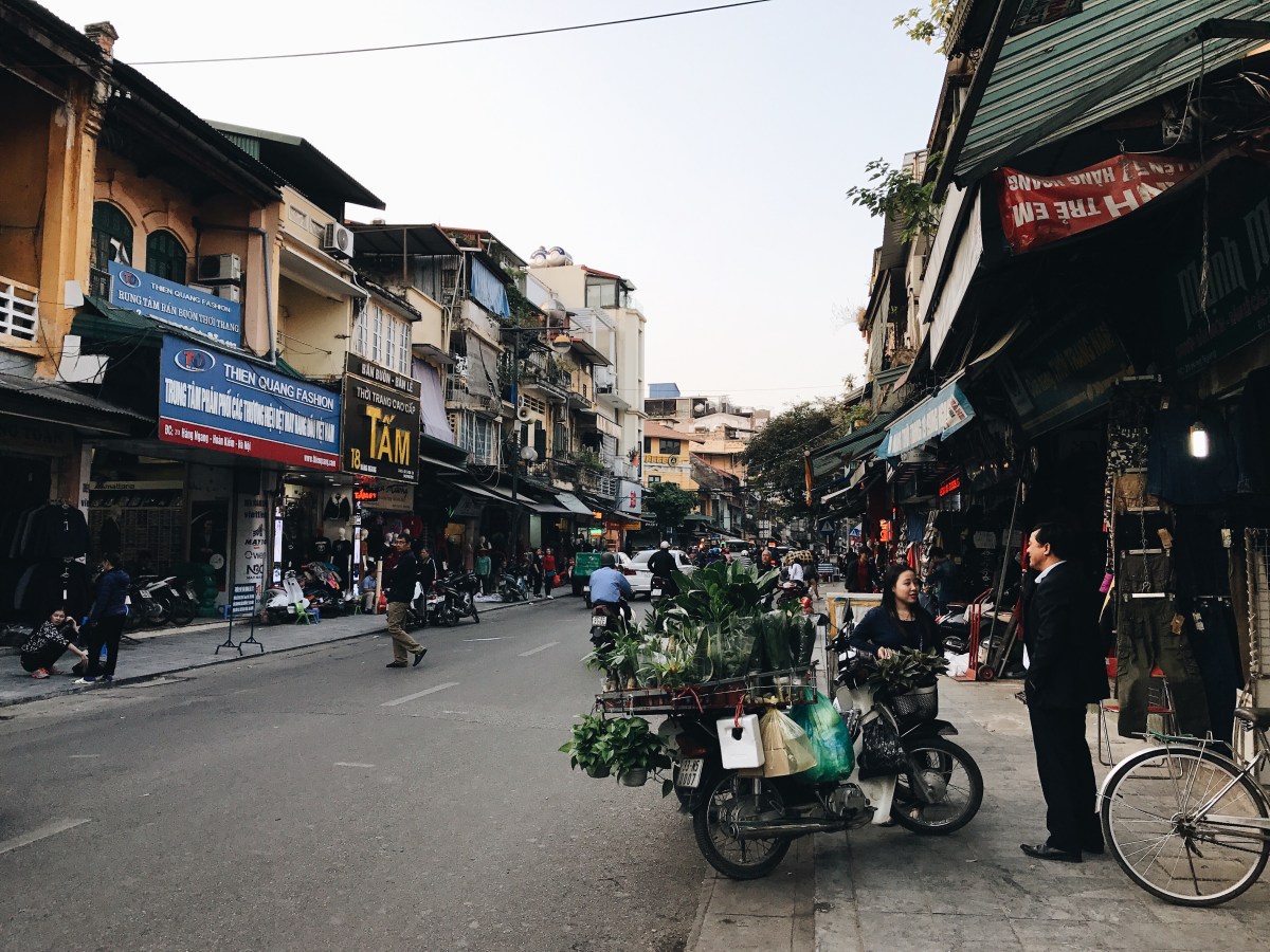 Markets are such a staple of life in Southeast Asia. We visited the biggest one in Hanoi, the Dong Xuan Market, an enormous covered market, several floors tall, packed with vendors selling everything you can think up. This building was such a fire hazard, Robbie and I just had to laugh. It’s stuffed to the brim with people and goods, so packed and so hot and humid, the air is hard to breathe. It’s not for the claustrophobic, so you can imagine after thirty minutes wandering the floors, I was totally ready to be safely outside breathing more easily. The streets near the market are filled with outdoor market stalls too and those are way more fun for me. It reminded me of Chiang Rai. I could wander outdoor market booths for hours. It’s so colorful and magnificent, alive with culture and centuries of history. One of the most insane things we loved about Vietnam that we had not seen in the other SE Asian cities was how people balanced enormous loads on the backs (and sometimes fronts) or their motorcycles. It would catch me off guard every time toward the beginning of the week, totally freaking me out and worrying me that they were going to get off balance and wreck and hurt themselves or someone else on the road, but by the end of the week it was more just pure entertainment more than anything else. I know this is going to be hard to believe for Americans living the Midwest life that I live, but these men would balance an entire mattress (or TWO) on the back of their motorcycle. Or they’d stack four giant boxes one on top of the other behind them, or maybe a big desk, or some other package bigger than two full adults. Nothing, I’m serious– nothing was tying these loads down. I know that seems impossible but apparently it’s not. Maybe they’d squish a friend between them and the load on the bike in order that the friend could help stabilize the load. This wasn’t just a once a day or every other day sighting. This was an every-street sighting. In every grouping of traffic on nearly every street, there was someone with an enormous load, sometimes even carrying an extra box on their laps and only driving their motorcycle with one hand and a tall stack of boxes behind their backs. I captured a couple pictures of people with large loads, but it seemed the people with the biggest loads, I never had my camera or my phone ready in time by the time they had driven well past us. Which is a bummer, but I suppose you’ll just have to take my word for it. It was incredible. Another amazing sight to us was seeing a handful of barbers who just set up shop on a sidewalk. They’d hang a mirror from a fence next to a building, put a chair in front of it and clip away at customer’s hair. Like this is every day life for these people! Just walk down the street, see turtles and live fish in a bucket that were sliced up (still alive) right before they’re given to the paying customer on the same street as some guy is getting his haircut from a random man running his barber business on the sidewalk. It’s definitely a culture shock for us Midwesterners. A shock, but also stinkin awesome and made us smile every turn we took with something new and crazy to watch and observe.