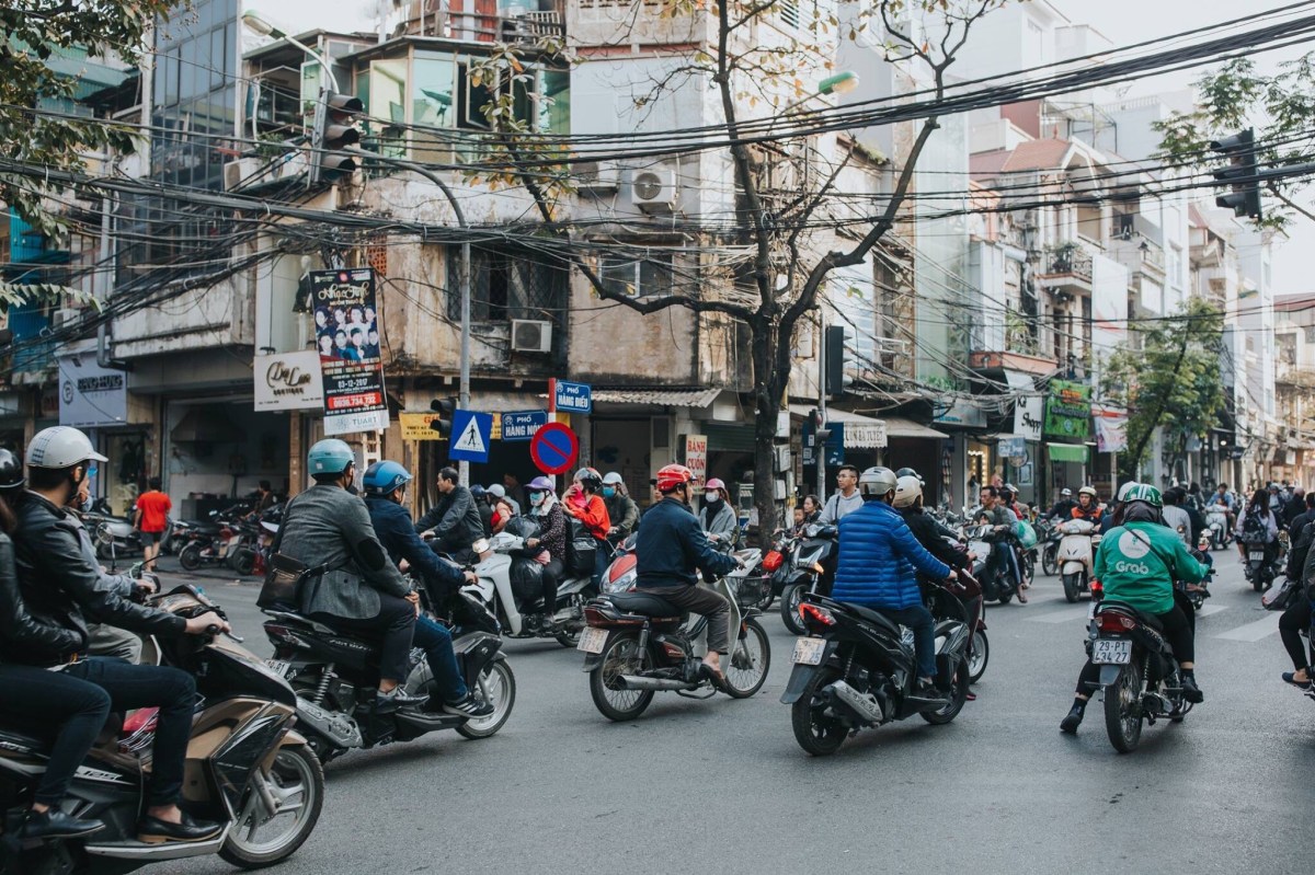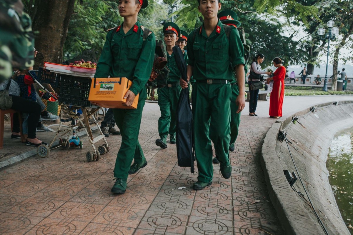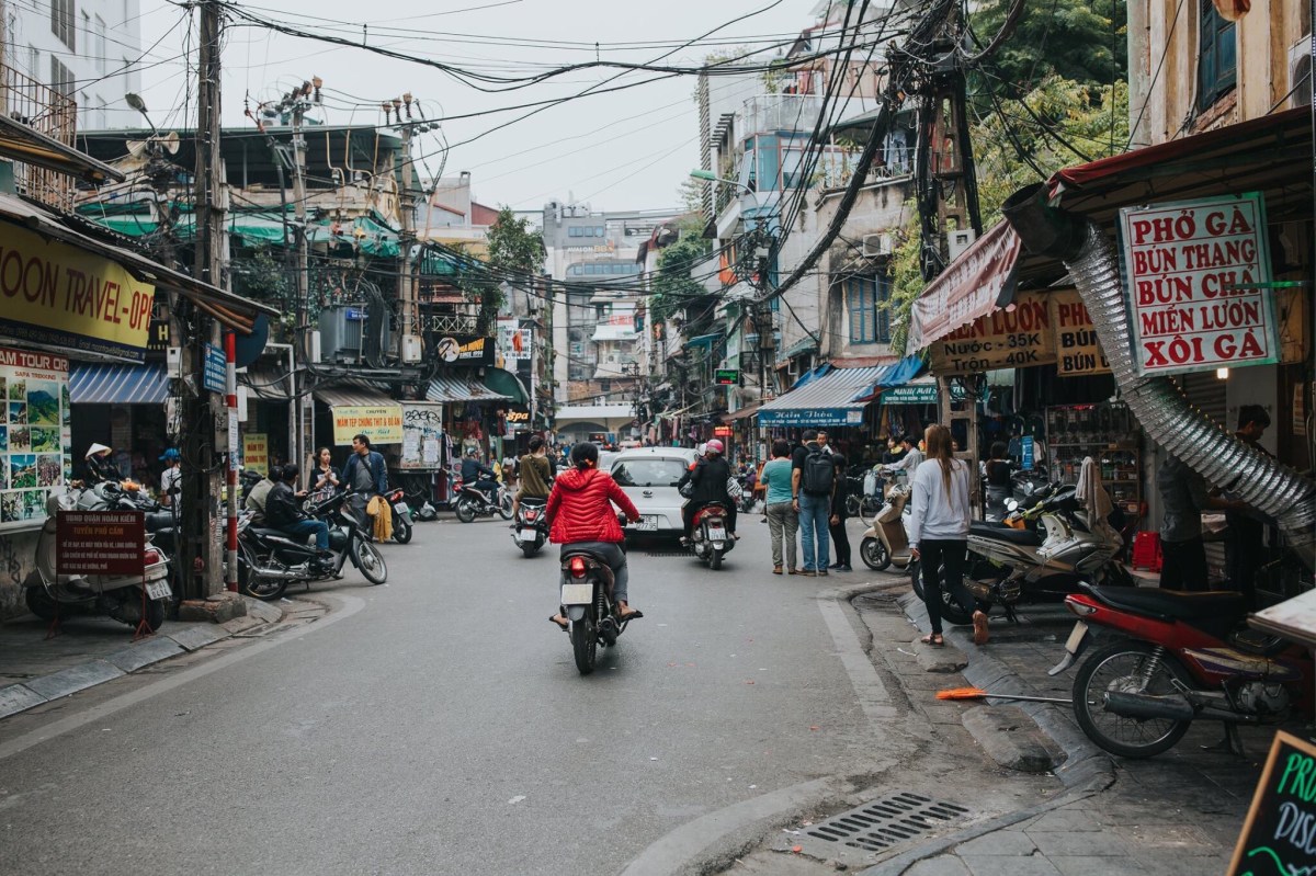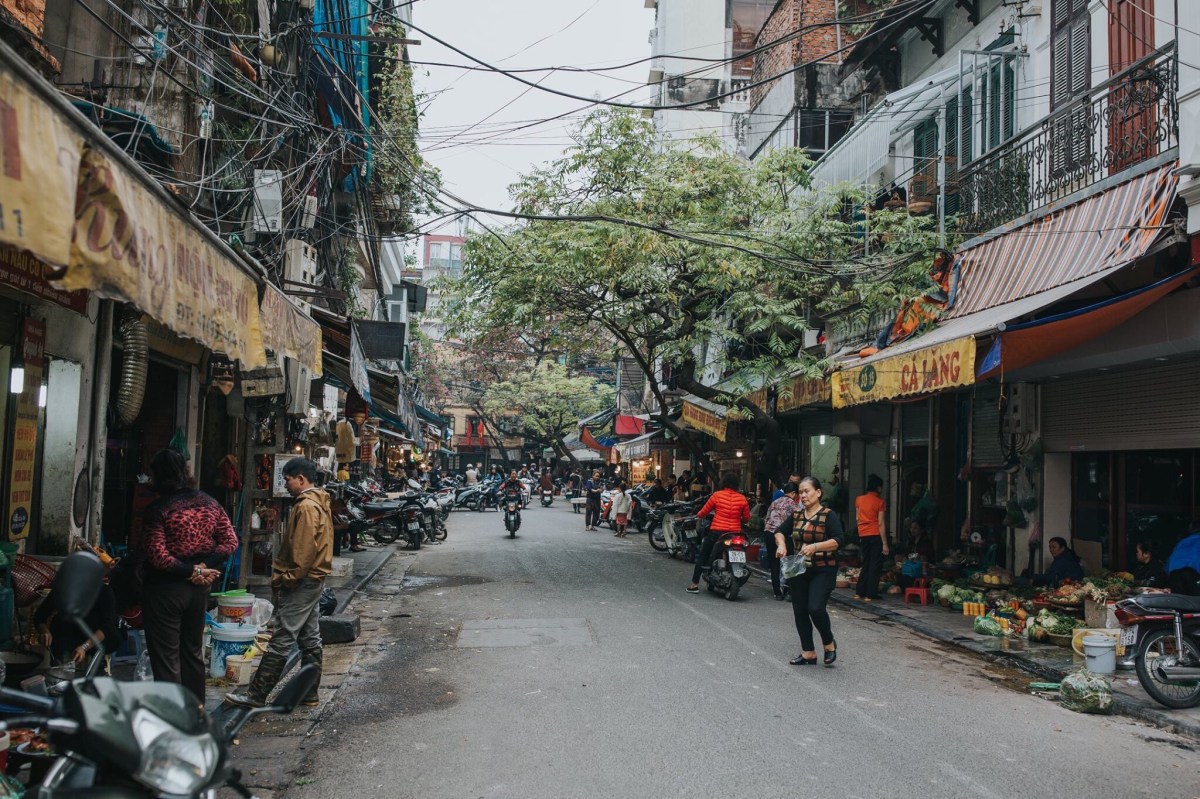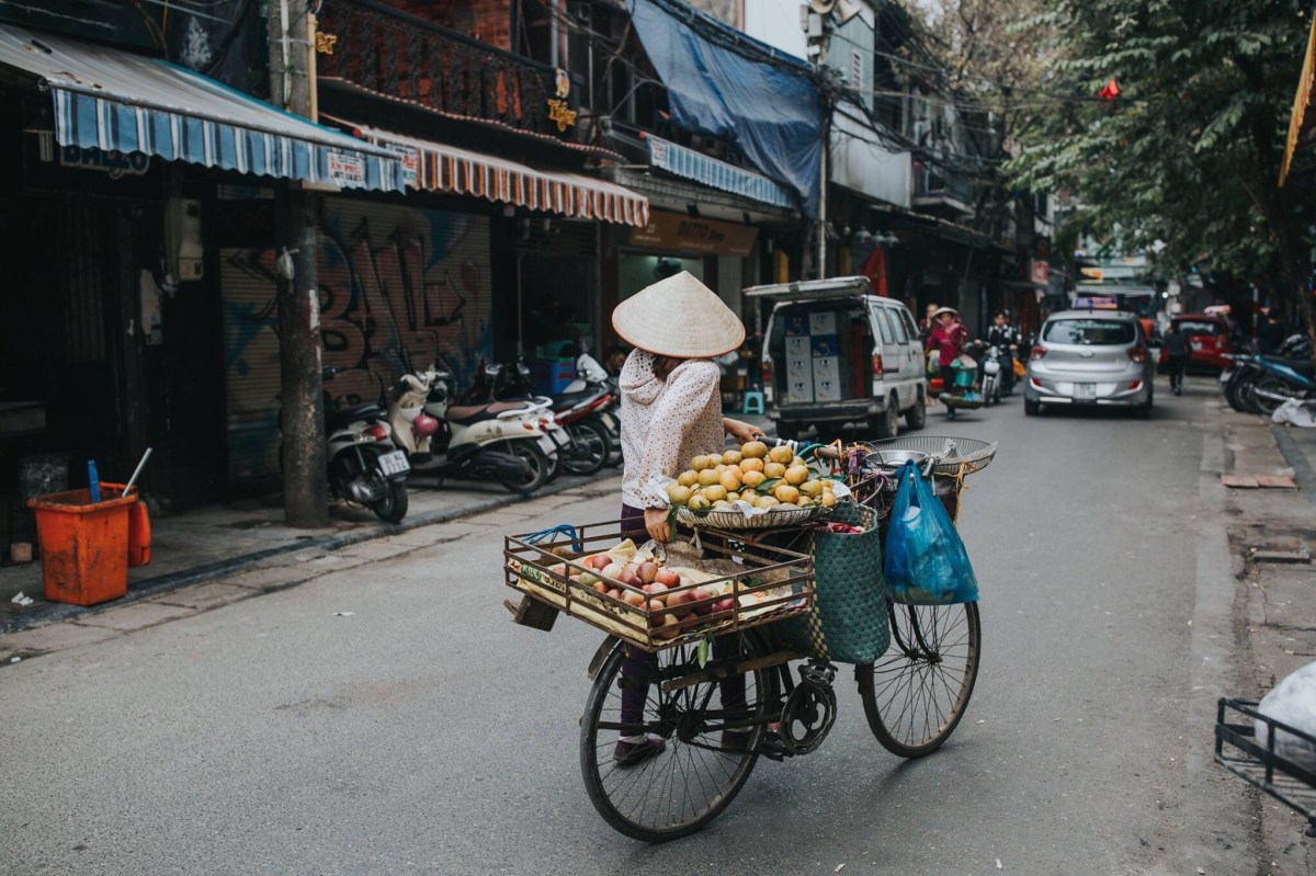 Markets are such a staple of life in Southeast Asia. We visited the biggest one in Hanoi, the Dong Xuan Market, an enormous covered market, several floors tall, packed with vendors selling everything you can think up. This building was such a fire hazard, Robbie and I just had to laugh. It’s stuffed to the brim with people and goods, so packed and so hot and humid, the air is hard to breathe. It’s not for the claustrophobic, so you can imagine after thirty minutes wandering the floors, I was totally ready to be safely outside breathing more easily. The streets near the market are filled with outdoor market stalls too and those are way more fun for me. It reminded me of Chiang Rai. I could wander outdoor market booths for hours. It’s so colorful and magnificent, alive with culture and centuries of history. One of the most insane things we loved about Vietnam that we had not seen in the other SE Asian cities was how people balanced enormous loads on the backs (and sometimes fronts) or their motorcycles. It would catch me off guard every time toward the beginning of the week, totally freaking me out and worrying me that they were going to get off balance and wreck and hurt themselves or someone else on the road, but by the end of the week it was more just pure entertainment more than anything else. I know this is going to be hard to believe for Americans living the Midwest life that I live, but these men would balance an entire mattress (or TWO) on the back of their motorcycle. Or they’d stack four giant boxes one on top of the other behind them, or maybe a big desk, or some other package bigger than two full adults. Nothing, I’m serious– nothing was tying these loads down. I know that seems impossible but apparently it’s not. Maybe they’d squish a friend between them and the load on the bike in order that the friend could help stabilize the load. This wasn’t just a once a day or every other day sighting. This was an every-street sighting. In every grouping of traffic on nearly every street, there was someone with an enormous load, sometimes even carrying an extra box on their laps and only driving their motorcycle with one hand and a tall stack of boxes behind their backs. I captured a couple pictures of people with large loads, but it seemed the people with the biggest loads, I never had my camera or my phone ready in time by the time they had driven well past us. Which is a bummer, but I suppose you’ll just have to take my word for it. It was incredible. Another amazing sight to us was seeing a handful of barbers who just set up shop on a sidewalk. They’d hang a mirror from a fence next to a building, put a chair in front of it and clip away at customer’s hair. Like this is every day life for these people! Just walk down the street, see turtles and live fish in a bucket that were sliced up (still alive) right before they’re given to the paying customer on the same street as some guy is getting his haircut from a random man running his barber business on the sidewalk. It’s definitely a culture shock for us Midwesterners. A shock, but also stinkin awesome and made us smile every turn we took with something new and crazy to watch and observe.