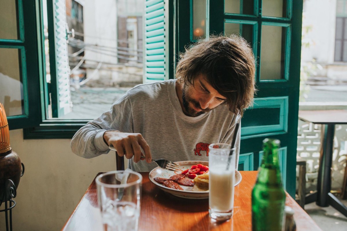 We found our way to a amazingly-rated Banh Mi restaurant for lunch. I’d wanted to try banh mi (which just translates as sandwich) for awhile and was excited to actually do it in Vietnam. We chose the best place. But first I should describe– the streets of Hanoi are awesome. It’s like you’ve been transported back several decades, every building with a flavor of the war, the air is polluted and thick with the tangle of honks and loud voices and hoards of people. Every other street is an old Vietnamese man in a military uniform hollering things in Vietnamese through a megaphone to pedestrians and street traffic alike. So many women wearing conical hats (pointy straw hats you’d expect to see of people working in rice fields) walking their rusty bicycles that carried fruits or vegetables or bundles and bundles of flowers. Even in this city of eight million, you walk along the street dodging cars and motorcycles instead of on the sidewalk because the sidewalks are all packed with locals running businesses on them. Maybe you’ll have a small section of sidewalk you can actually walk on, free from operations, and then inevitably you resort back to walking on the actual street to avoid stepping over someone’s pot they’re cooking rice or broth in or a table a family is sitting around right there on street corners. Tall old trees jut out of sidewalks and the fronts of buildings, bending over the streets, adding to this illusion we were in some other world, similar yet so different than the Southeast Asia we had come to know. Robbie and I came to the conclusion that even if we just walked these streets for seven days and did nothing else, we’d be perfectly satisfied with the experience. There was so much to take in, noises, sights, and smells. Anyway, our slow-roasted chicken Banh Mis were incredible and were the most flavorful sandwiches we’d ever eaten. I would make banh mi a staple in my diet if I could figure out how to make them.